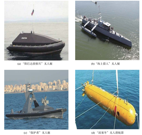 ÔÚË®ÃæÎÞÈËϵͳ·½Ã棬ÃÀ¹úÌá³öÁË“ÃÀ¹úÏȽø¿´·¨ÊÖÒÕÑÝʾÏîÄ¿”£¨ACTD£©£¬ÆäÖ÷ҪʹÃüÖ®Ò»¼´ÊÇ¿ªÕ¹“˹°Í´ïÕì̽±ø”ÎÞÈËͧµÄÑо¿¡£¸ÃÏîÄ¿ÒÑÓÚ2007ÄêÍê³É£¬²¢ÔÚÒÁÀ¿ËÕ½Çø¾ÙÐÐÁËÊÔÑé¡£“˹°Í´ïÕì̽±ø”ÎÞÈËͧ´îÔØÓÐÎÞÈ˼ÝʻϵͳÓëÊÓ¾à/³¬ÊÓ¾àͨѶϵͳ£¬²¢´îÔØÓеç¹â/ºìÍâËÑË÷תËþ¡¢¸ßÇåÉãÏñ»ú¡¢µ¼º½À×´ï¡¢Ë®ÃæËÑË÷À״ȫÇò¶¨Î»ÏµÍ³ÎüÊÕ»úµÈÏȽø´«¸ÐÆ÷£¬ÒÔ¼°½¢ÅÚ¡¢·´½¢µ¼µ¯¼°·´Ç±¸ÐÓ¦Æ÷µÈÎäÆ÷£¬Ö÷ÒªÓÃÓÚÖ´ÐÐÇ鱨ËѼ¯¡¢Ä¿µÄ¼àÊÓ¡¢ÐÅÏ¢Õì̽¡¢·´Ë®À׺ͺ£Éϰ²·ÀµÈʹÃü£¬¾ßÓÐÒ»¶¨µÄ×ÔÖ÷ÄÜÁ¦¡£ÃÀ¹úÑÐÖÆµÄ“º£ÉÏÁÔÈË”ÎÞÈËͧ´îÔØÓÐÉùÄÅÓë¹âµç´«¸ÐÆ÷£¬ÒÔ¼°½ü¾à¡¢Ô¶³ÌÀ×´ï̽²âϵͳÓë¿ÉÀ©Õ¹Ä£¿é»¯ÉùÄÅϵͳ£¬Ö÷ÒªÓÃÓÚÖ´ÐÐʶ±ð¡¢¼à²â¿ÉÒÉÄ¿µÄ£¬Ö¸µ¼»ðÁ¦¹¥»÷µÈʹÃü¡£ÃÀ¹úº£ÑóÎÞÈËϵͳÈçͼ4Ëùʾ¡£ÒÔÉ«ÁÐÑÐÖÆµÄ“±£»¤Õß”ÎÞÈËͧÖ÷ÒªÓÃÓÚÖ´ÐÐÇ鱨Õì̽¡¢¿ÉÒÉÄ¿µÄÇø·Ö¡¢Õ½Êõ×èµ²¡¢µç×Ó×ÌÈźÍ׼ȷ¹¥»÷µÈʹÃü£¨Í¼4£©¡£¶íÂÞ˹ÑÐÖÆµÄÎÞÈËË®ÃæÕì̽ͧ¿ÉÒÔÔÚĸ½¢µÄÖ¸»ÓÏÂÖ´ÐпìËÙѲÂßʹÃü²¢¼ì²é¡¢¼àÊÓÖ¸¶¨ÇøÓò£¬Õ÷²ÉÇ鱨¡£