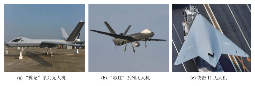 ÔÚ¿ÕÖÐÎÞÈËϵͳ·½Ã棬³É¶¼·É»ú¹¤Òµ¼¯ÍÅÑÐÖÆµÄ“ÒíÁú”ϵÁÐÎÞÈË»ú¾ßÓÐÈ«×ÔÖ÷ˮƽÆð½µÄÜÁ¦¡¢Ñ²º½º½ÐÐÄÜÁ¦¡¢åÐÒ£ÐͬÄÜÁ¦ÓëµØÃæ½ÓÁ¦¿ØÖÆÄÜÁ¦µÈ£¬´îÔØÓжàÐ͹âµç/µç×ÓÕì̽װ±¸ÒÔ¼°Ð¡ÐÍåÐң׼ȷ¹¥»÷ÎäÆ÷£¬¿ÉÒÔÖ´ÐÐÇ鱨Õì̽¡¢Ä¿µÄ¸ú×Ù¡¢»ðÁ¦¹¥»÷µÈʹÃü¡£ÎÒ¹úÑÐÖÆµÄ“²Êºç”ϵÁÐÎÞÈË»ú¾ßÓÐÖпճ¤º½Ê±µÄº½ÐÐÄÜÁ¦£¬¿ÉÒÔ´îÔØµç×Ó×ÌÈÅϵͳÓë¶àÖÖÎäÆ÷ϵͳ£¬ÄÜÖ´ÐлðÁ¦¹¥»÷¡¢Ç鱨Õì̽¡¢Í¨Ñ¶×ÌÈÅ¡¢µç²¨×ÌÈŵÈʹÃü£»ÑÐÖÆµÄ¹¥»÷11ÐÍÎÞÈË»ú¾ßÓм«Ç¿µÄÒþÉíÄÜÁ¦£¬¿ÉÒÔ´îÔØ×¼È·µÄÖÆµ¼µ¼µ¯£¬ÓÃÓÚÖ´ÐжԵع¥»÷ʹÃü¡£ÎÒ¹ú¿ÕÖÐÎÞÈËϵͳÈçͼ5Ëùʾ¡£